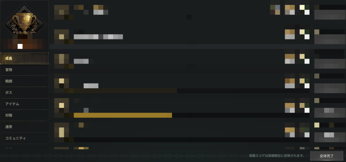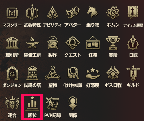 実績を進めることで順位を上げることが可能です。実績は狩りを行ったりボスを討伐することで進めることができます。