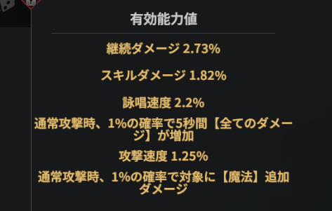 カリオンの刻印は詠唱速度や攻撃速度などのステータスが上昇します。攻撃速度や詠唱速度は特に火力に差が出る部分になっているので一番妥協をせずに厳選したい刻印になっています。