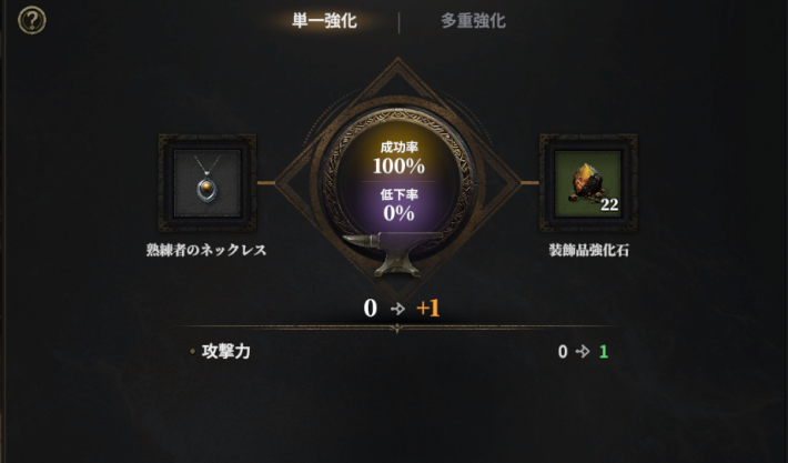 装備強化石はアクセサリーの強化に使用します。ただし、レアリティの高いものはレアリティの低い強化石で強化を行うことはできず、レアリティの高い強化石を入手しなければならないことに注意が必要です。