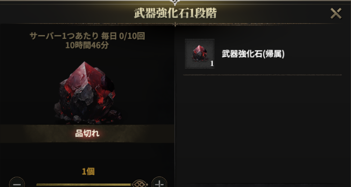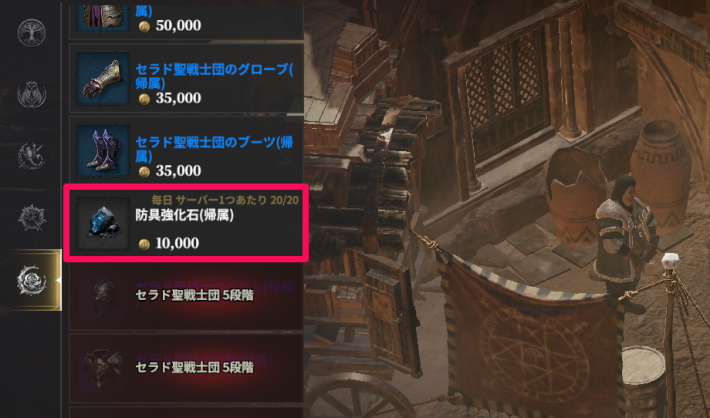 装備強化石は好感度商人から入手が可能です。好感度商人は武器強化石を入手できない点には注意が必要です。