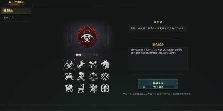 連合設立から必要な情報を入力し連合を設立しましょう。