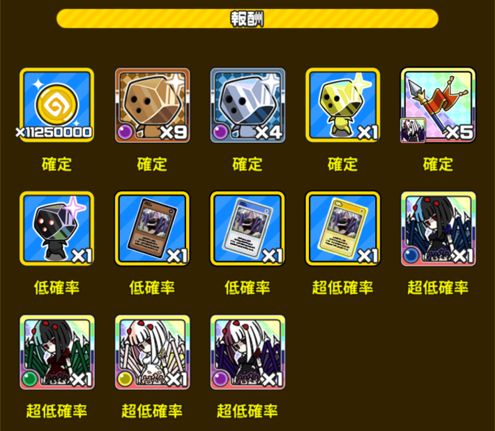 10階層と20階層のボスクリア時の報酬として、低確率でアラキナ(水・風・光・闇)を獲得できます。このドロップ率は、限定商品を購入することで上昇可能です。
