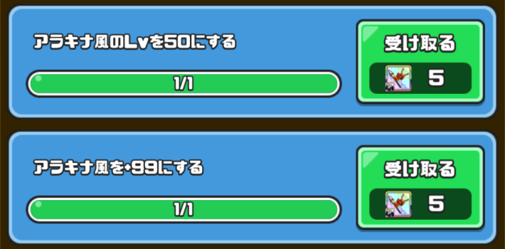 ミッションを達成したら報酬を受け取りましょう。アラキナの強化段階やクリアした階層に応じて、アラキナのリーダーの心得を獲得できます。