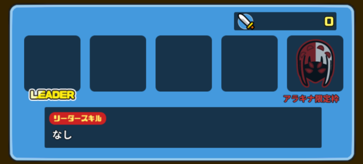 イベント内でのパーティー編成には限定枠が1つあり、アラキナのみ編成可能です。アラキナを編成することで、パーティーが5体になりイベントを有利に進めることができます。