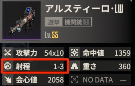 武器のダメージ量は射程に関係なく、攻撃が当たる範囲ならダメージ量は同じです。そのため敵の攻撃射程を確認して、可能な限り一方的に攻撃できる射程で攻撃することだけを意識して戦えば問題ないです。