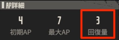 毎ターンのAP回復量は、操縦士のステータス画面をタップすると表示されるAP詳細から確認できます。