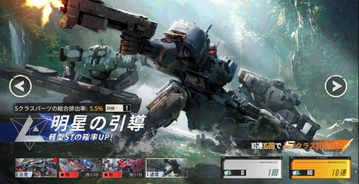 STはSTガチャ(カタログ)を引くことで入手できます。ガチャは運航許可書を1枚消費して1回引くことが可能で、運航許可書は純晶88個で交換できます。また10連ガチャを引くとランダムなSTパーツ6個と1つのシリーズのSTを4部位1セット入手できます。