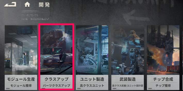 特注モジュラーは、開発画面の「クラスアップ」から使用できます。クラスアップには同タイプの汎用モジュラーが必要となるため、あらかじめ用意しておきましょう。