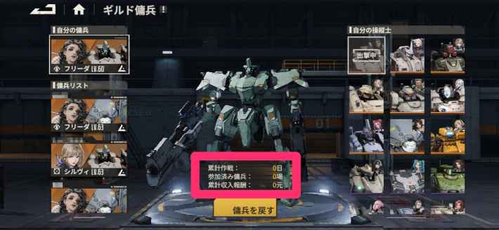 ギルドに入るとギルド傭兵をギルドメンバーに貸し出すことが可能になります。他のプレイヤーが自身が貸し出した傭兵を使ってステージをクリアすると、お礼としてミハマ通貨が貰えます。