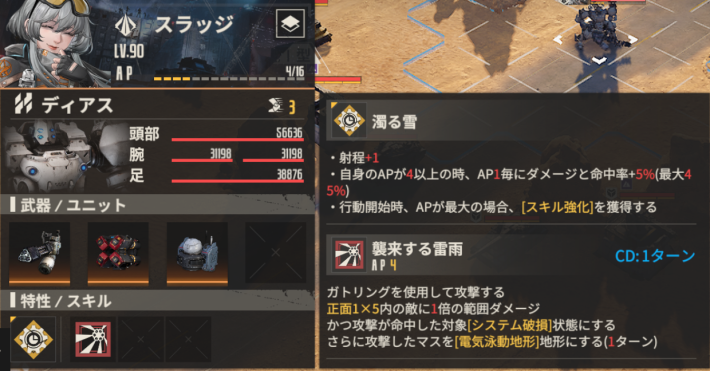 作戦配置「泥沼に陥る」でボスのスラッジが出現します。スラッジのガドリングスキルでは攻撃範囲を電気泳動地形にして、待機したキャラはシステム破損になるので注意しましょう。
