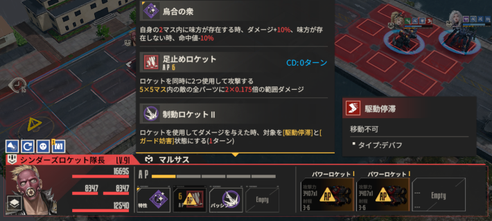 マップの左上に出現する戦術官は、移動不可のデバフを付与します。味方の行動が制限されてしまうので、戦術感の射程範囲に注意して、機動力の高い味方で早めに撃破しましょう。