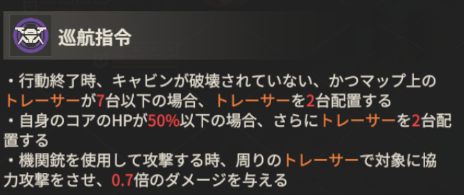 マップ上に2体出現する同盟軍の指揮官は、毎ターントレーサーを2体配置します。トレーサーは火力が高い上に協力攻撃を行うので、早めに指揮官を撃破しましょう。