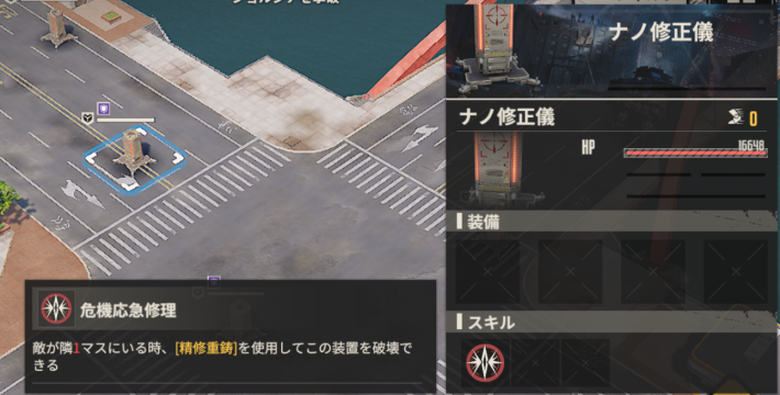 マップ上のナノ修正儀の1マス内で待機すると、コマンドスキルで潰傷を解除できます。重複数が多い味方は、修正儀を活用して随時リセットしましょう。