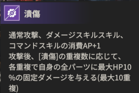 ボスは被攻撃時に味方へ潰傷を付与し、味方が回復スキルを使うとその対象にも潰傷を付与します。潰傷は重複するため、同一キャラへのスタックを避ける立ち回りを意識しましょう。