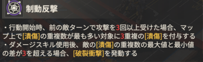 味方の潰傷重複数の最大と最小の差が3を超えると、超過分だけボスの火力が強化されます。潰傷の効果は2ターン持続するため、継続ターンも考慮して管理しましょう。