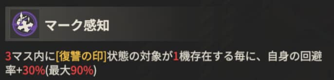 印対象がサミーの3マス内にいると、1体ごとに回避+30%が発生します。ボスから3マス外へ退避し、回避率が上昇していない状態で攻撃しましょう。
