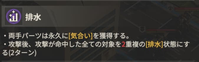 Tips! | 排水が付与されたキャラには、ガルシアのダメージが+10%される点にも注意しましょう。 |