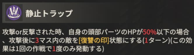 雷撃弾は隣接マスへ伝導するため、味方は最低1マス間隔で配置しましょう。また、頭部HP50%未満で周囲3マスに印を撒くため、その直前に味方を3マス外へ退避させておきましょう。