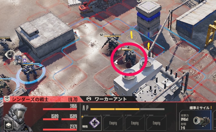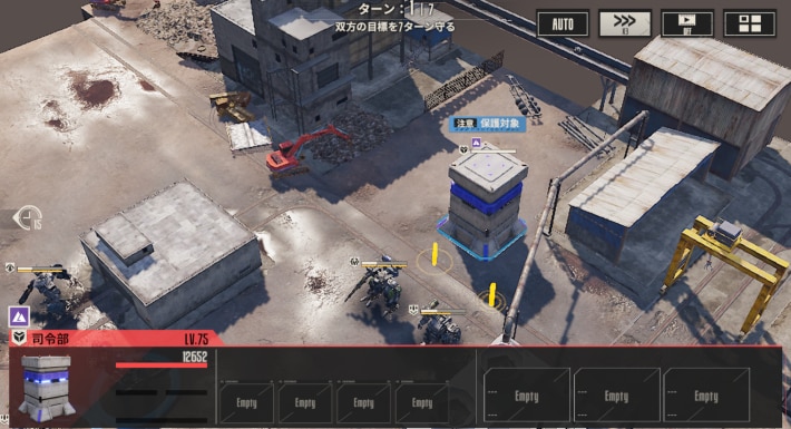 シンダーズ所属は赤い司令塔を、ノース連合所属は青い司令塔を優先的に攻撃します。7ターンの間に両方の司令塔を守り切ればクリアとなるため、接近してくる敵を優先して撃破しましょう。