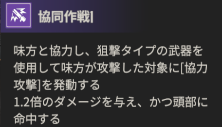 ユージーンはアサルトライフルで雑魚敵の攻撃に協力攻撃を行います。非常に火力が高いため、可能な限り雑魚敵は撃破するか、腕パーツを破壊して無力化しておきましょう。