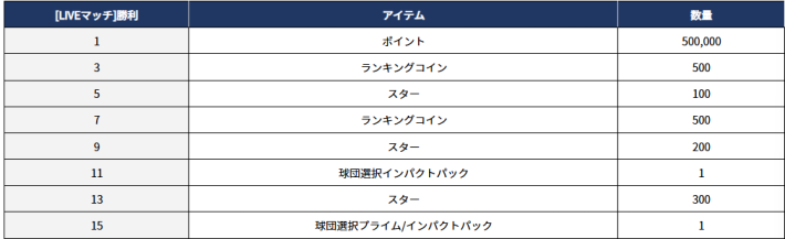 LIVEマッチでの安打数に応じて球団選択インパクトパックが手に入る。勝ち負けに関係なく、リスクなしで球団選択プライム/インパクトパックが入手可能なのはかなり効率が良い。時間があれば是非LIVEマッチに参加しよう。