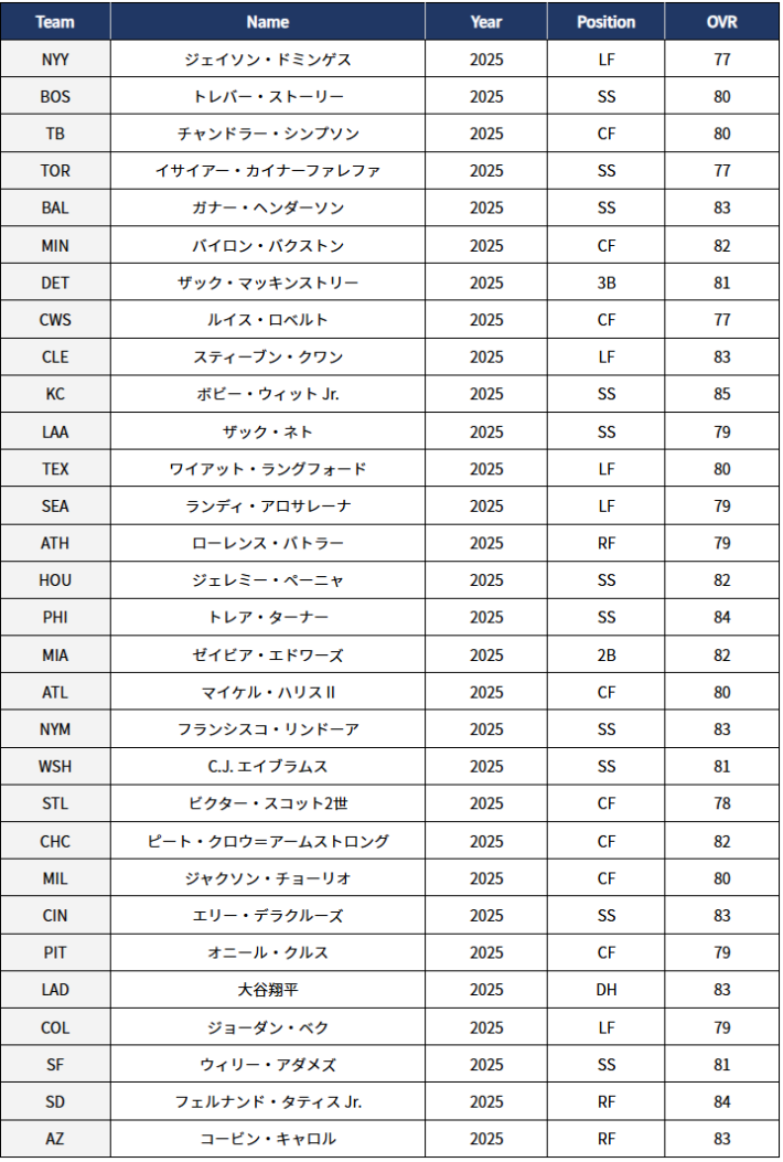 今回のRaivalPick選手は走塁が高い選手が選出されている。単打で出塁して、打撃性能の高い大谷翔平で得点を重ねよう。