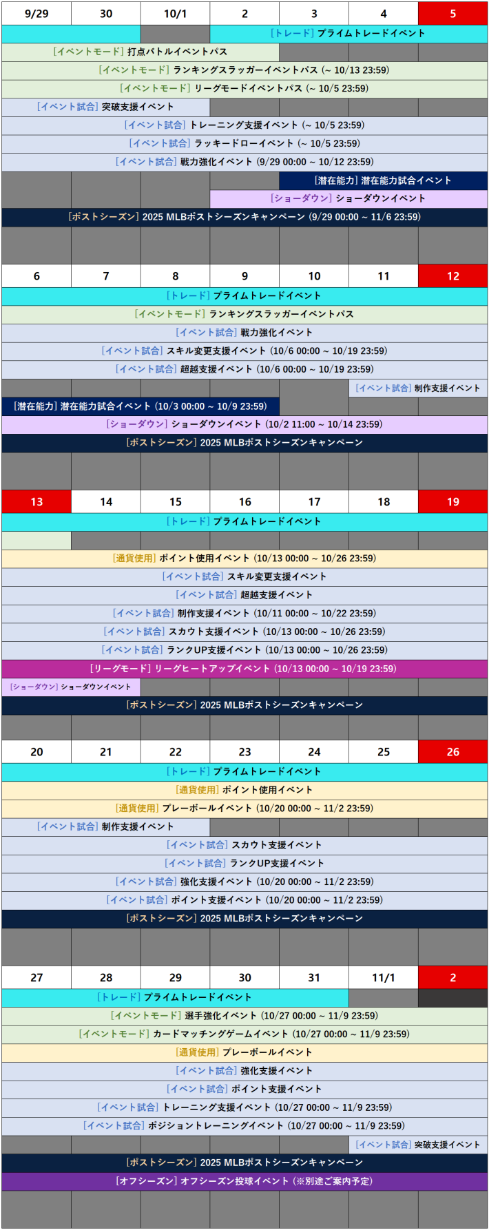 ▼ポストシーズンイベントスカウト | 9/29(月)0:00 ~10/17(金)23:59 |