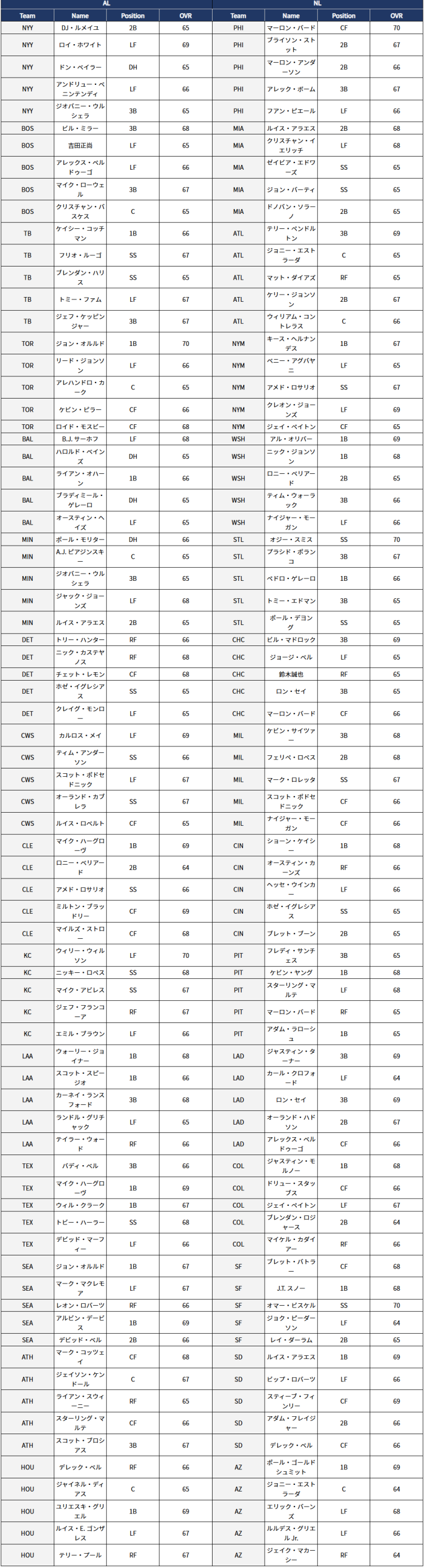 | 追加潜在能力 | クラッチ +1 | フルスイング +1 | クラッチ +1 バント +1 |