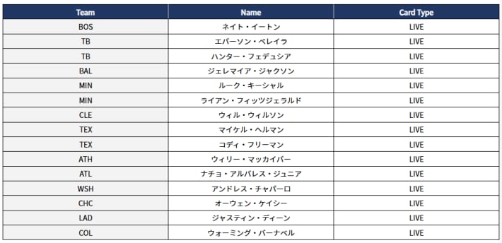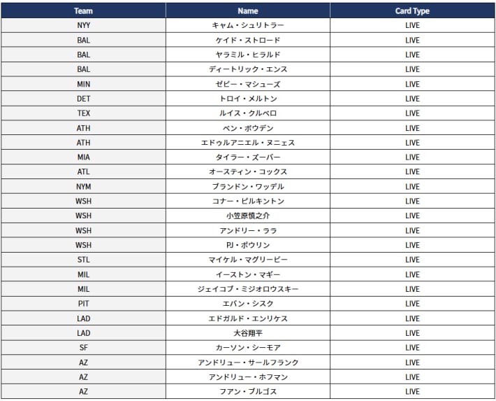 MLB RIVALS(ライバルズ)における2025年第12次LIVEアップデートの情報です。LIVEアップデートで変更された選手の詳細やゲームの仕様を掲載。