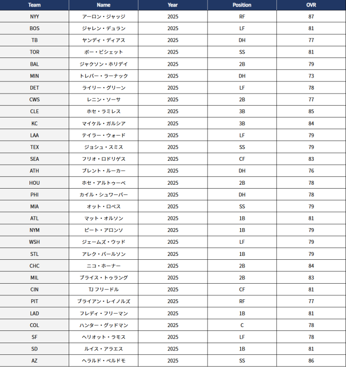 MLB RIVALS(ライバルズ)における2025年第17次LIVEアップデートの情報です。LIVEアップデートで変更された選手の詳細やゲームの仕様を掲載。