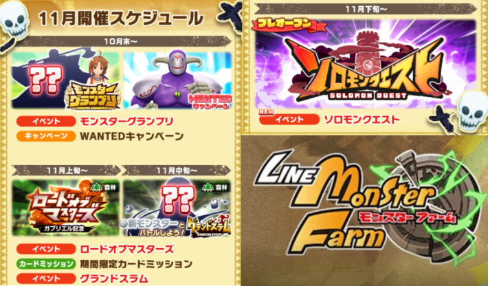 LINEモンスターファーム(LINEMF)における、イベントスケジュールと過去に開催された期間限定イベントを掲載しています。今後予定されているイベントを確認し、是非今後の予定立てに役立ててみてください。