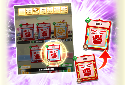 攻略途中では、最初に選択した供モンがランダムで3体提示され、1体を加入させることができるイベントが発生する。供モンの得意な距離を考慮した上で、どのモンスターを加入させるかを決めよう。また「供モン伝授」イベントが発生すると、カードを強化できるぞ。