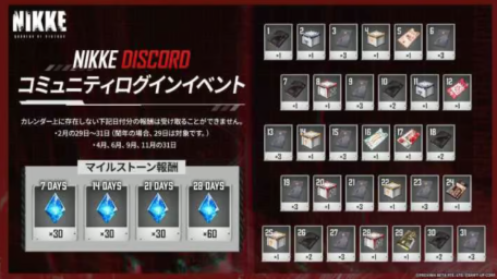 公式Discordアカウントと連携して「ログインイベント」スレッドからサインインすることで、ゲーム内に各報酬が配布される。毎日0時でリセットされるので、欠かさずログインしておこう。