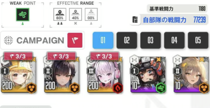 手動で操作する場合、真ん中に配置したキャラを初めに操作することになる。ARなどの操作しやすいキャラやアタッカーを置いておくと良い。