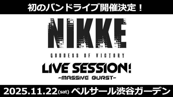 NIKKE初のバンドライブが開催決定。バンドの迫力ある生演奏でNIKKEの音楽を体感でき、スペシャルボーカルとしてブラン役の徳井青空さん/ノワール役 の久保ユリカさんも出演する。