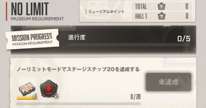 ノーリミットモードではニケのLv400固定が解除され、ユーザーの強化状態でボスに挑む。さらに、ボスは戦闘中にレベルが上昇し、5部隊それぞれが到達した強化レベルの合計に応じてミッションを達成できる。ミッション報酬の「ミュージアムポイント」によってサーバーごとのユーザーランキングが決まる。