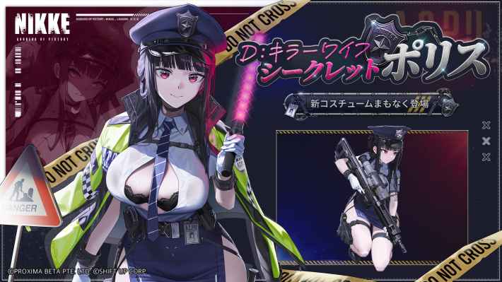 9/24(水)より、D:キラーワイフのコスチュームガチャが販売。専用アイテムを購入してガチャを回すことで、限定衣装「シークレットポリス」や高級ガチャ券などのアイテムを入手できる。