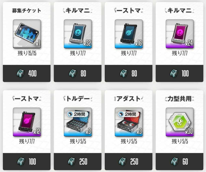 エデンポイントが集まったら、イベントショップにて欲しいアイテムと交換しよう。募集チケットを最優先で交換しつつ、コンソールなどの育成素材を入手しておきたい。