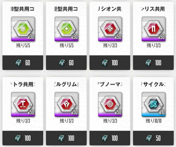 次に各クラスや企業所属キャラ全員のステータスを高めるコンソールと交換しよう。ただし、リサイクルエネルギーだけは入手効率が悪いため交換する必要はない。