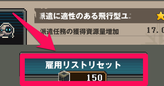 建築素材を使えば雇用リストの一覧を更新できる。リスト内に欲しいユニットがいなかった場合は、リストをリセットして雇用対象を入れ替えよう。