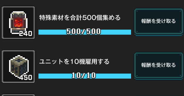 サブクエストを達成すると資源が貰えます。一度にまとまった量を入手できるので、サブクエストを確認して報酬を受け取ろう。