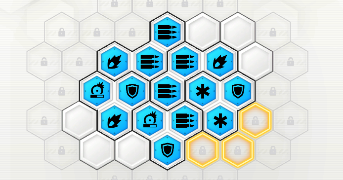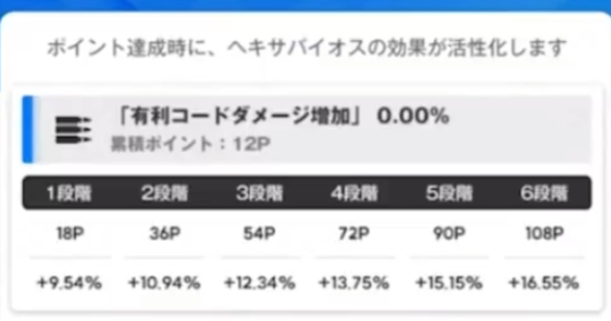 ヘキサコードには、装着したブロックの効果によって追加で強化が発動するヘキサバイオスがある。ブロックに付いているアイコンの種類や数が重要になるが、ベータ版ではバイオス機能はロックされているため自動装着でボードを埋めるだけで最大効果を得られる。