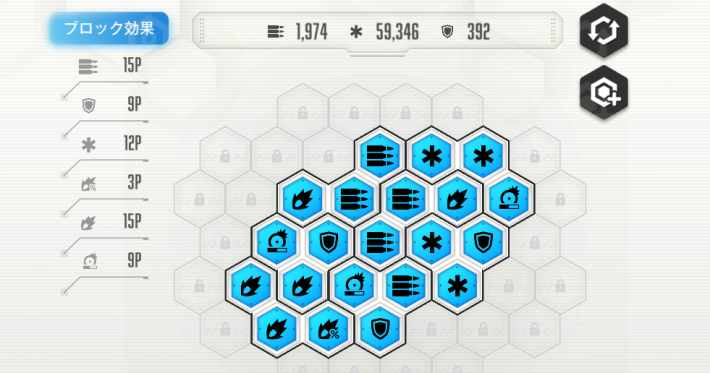 ヘキサコードでは「ヘキサバイオス」を使って、装着したブロックに応じてキャラの能力を強化できる。ブロックについているアイコンの種類と数によって有利属性ダメージや攻撃力などを伸ばせるため、使用するバイオスに合わせて装着するブロックも変えよう。