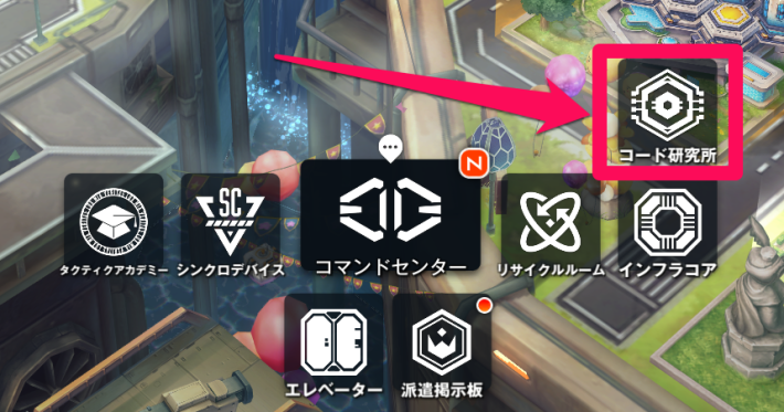 ヘキサコードは前哨基地の「コード研究所」から装備できる。前哨基地に施設が追加されているので、ヘキサブロックを入手したら研究所にいこう。