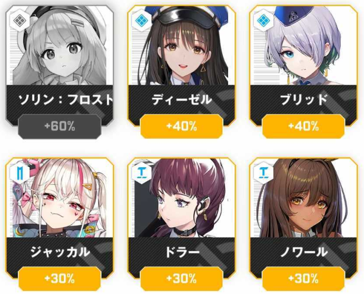 ボーナスが適用されるキャラ