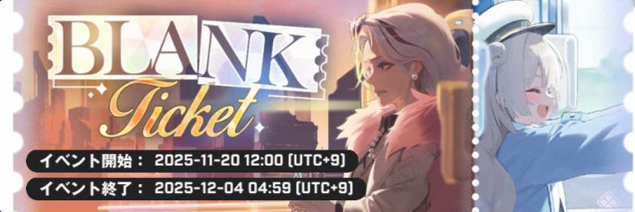 ニケ(NIKKE)のBLANK TICKETイベント攻略です。行き先未定のチケットの入手方法や報酬の交換優先度のほか、イベント限定壁紙などを掲載しています。勝利の女神ニケ(メガニケ)のイベントについて調べている方はこちらをご覧ください。