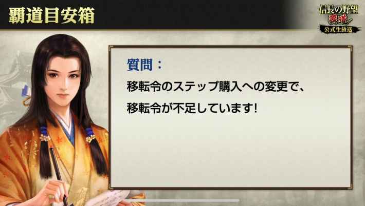 移転令の値段変更は、限られた一部のプレイヤーの戦場への影響が大きくなりすぎないように施されたものであり、すぐに変更する予定はないとのこと。