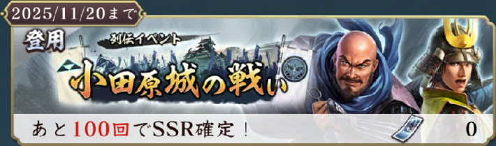 同時開催の登用では、列伝イベントに有利な「北条家」の2武将が登場。風魔小太郎は、強化効果の数に応じて火力が上がる特性を持ち、部隊の通常攻撃火力を強化できる。北条氏照は、全味方部隊が通常攻撃時に防御上昇を付与できるようになる特性を持ち、戦法発動までの耐久を強化できる。