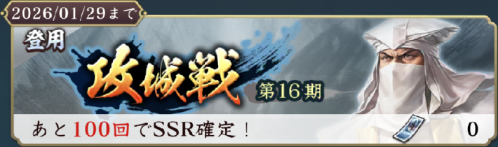 登用・攻城戦 第16期 ~2026/1/29まで | 【おすすめ度】 ★★★・・ 【ピックアップ】 ![]() |