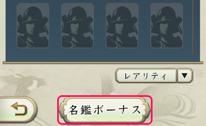 「機能→図鑑→武将名鑑→名鑑ボーナス」では、各兵種の全能力を強化できる。名鑑Lvは、各兵種の武将獲得や覚醒で上げられるため、強化素材に余裕があれば編成しない武将でも育成しておこう。